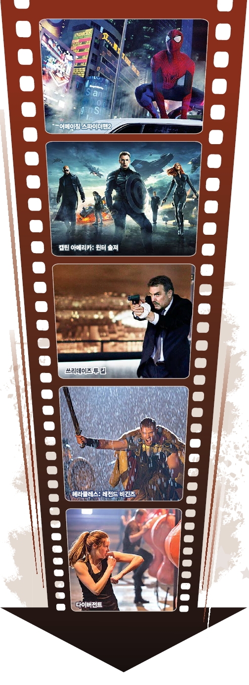 할리우드 영화들의 이 같은 선전은 한국 영화들의 공백기가 이어지면서 가능해진 이야기다. 한동안 웬만한 할리우드 대작들의 기를 못 펴게 했던 한국 영화는 ‘수상한 그녀’ 이후 흥행 답보 상태다. 저예산 영화 등이 선보인 가운데 130만명을 동원한 ‘우아한 거짓말’을 빼고는 이렇다 할 흥행작이 나오지 않고 있다. 현빈 주연의 ‘역린’과 류승룡 주연의 ‘표적’이 황금연휴를 앞둔 이달 말로 개봉일을 늦추면서 공백기는 더 길어졌다.