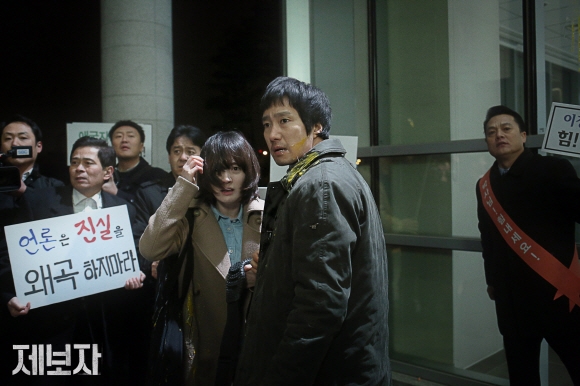 하지만 영화를 보고 나면 윤 PD라는 인물의 입체적인 내면을 보여주지 못한 아쉬움이 크다. 그의 캐릭터는 청와대의 외압을 받고, 언론을 탄압하는 경영진에 맞서 직장에서 내침을 당하는 것도 감수하고, 또 감옥에 갈 것까지 각오하는 ‘정의롭고 영웅적인 언론인’으로 박제화됐다. 또한 영화 제목이 말해주듯 가장 중요한 역할이어야 할 내부고발자로서 심 연구원에 대한 캐릭터의 입체성도 다소 밋밋하다. 현실의 삶 곳곳에서 거짓과 늘상 만나고 좌절하며 소시민적인 안위, 현실로부터의 도피 등 세상과 타협하고픈 비겁함 등을 안고 사는 우리 모두에게 더욱 필요한 캐릭터는 윤 PD가 아니라 심 연구원이다. 아예 영화 전면에 ‘영웅적 제보자’를 내세웠으면 어땠을까 하는 미련이 남는다.