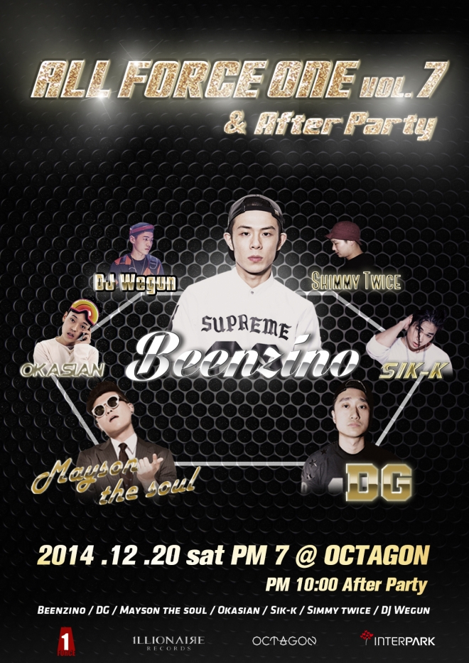 힙합 콘서트 ´올포스원 Vol.7 & 애프터파티(ALL FORCE ONE Vol.7 & After Party)´가 오는 12월 20일 토요일 오후 7시 서울 강남구 논현동에 위치한 클럽 옥타곤에서 열린다.