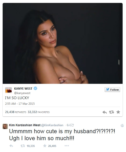 카니예 웨스트, SNS에 아내 누드 올리며 “난 행운아”