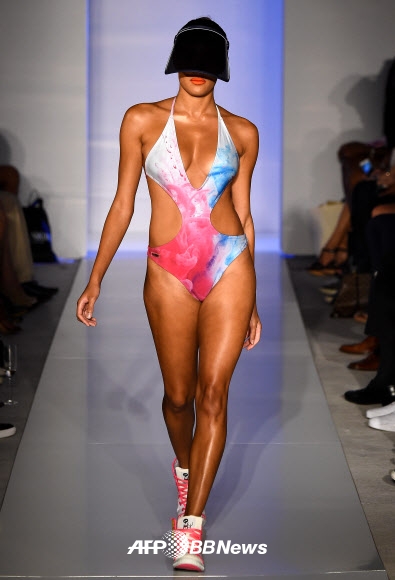 19일(현지시간) 미국 플로리다 마이애미 사우스 비치 살롱 1호텔(1 Hotel South Beach Salon) 에서 열린 마이애미 수영복 패션쇼에서 ‘릴라 니콜의 2016 작품(Lila Nikole 2016 Collection)’을 입은 모델이 무대를 누비고 있다.