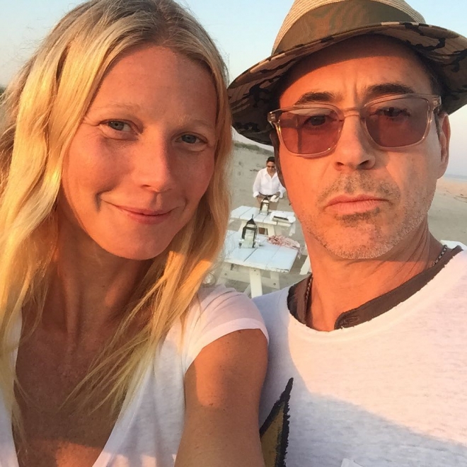 영화 ‘아이언맨’의 콤비 로버트 다우니 주니어(50)와 기네스 펠트로(42)가 해변에서 민낯의 셀피(selfie,셀카)를 찍었다. 다우니 주니어는 ’아이언맨’에서 토니 스타크 역, 펠트로는 페퍼 포츠 역을 맡고 있다는 사실에서 착안,인스타그램에 ‘페퍼로니(Pepperony)’라는 제목을 달았다.
