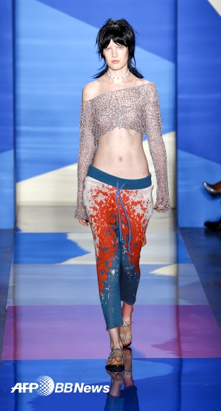 12일(현지시간) 미국 뉴욕시티 밀크 스튜디오에서 열리는 MADE 패션 위크 동안 바자 이스트 스프림 2016 쇼(Baja East Spring 2016 show )에서 한 모델이 런웨이를 캣워킹하고 있다.