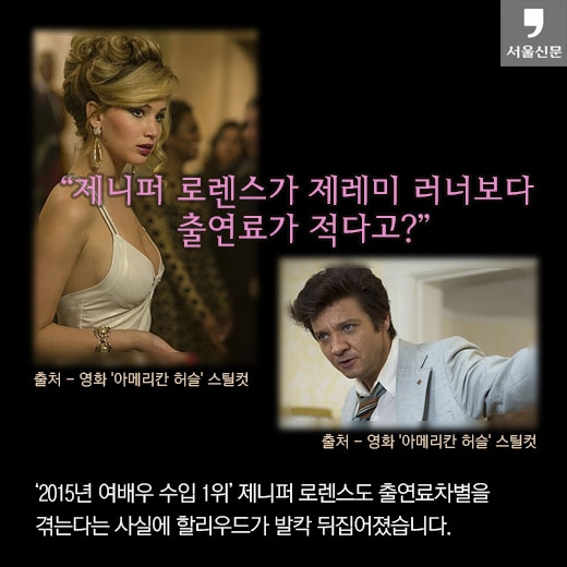 [카드뉴스]“나는 왜 남자배우보다 돈을 덜 받을까” 할리우드 임금차별에 분노한 여배우들