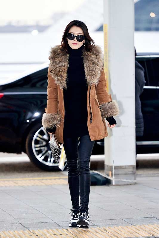 인천공항에 모습을 드러낸 그녀는 시간이 멈춘 듯 한 동안 미모와 스키니한 바디 라인을 뽐내는 우아한 공항 패션을 선보였다. 이 날 채정안은 블랙 터틀넥 스웨터와 가죽 스키니 팬츠를 시크하게 매치 하고, 럭셔리한 퍼가 돋보이는 아우터를 포인트로 선택, 한껏 멋스러운 공항 룩을 연출 한 모습이다.