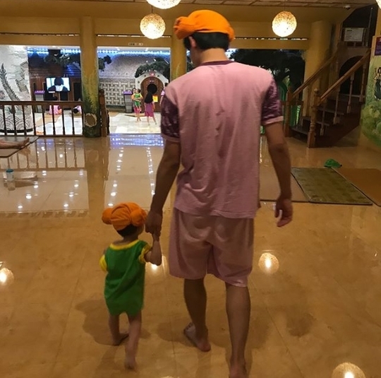 공개된 사진에는 동호와 아들 아셀 군이 찜질방에서 즐거운 시간을 보내고 있는 모습이 담겼다. 특히 양머리 모양의 수건을 머리에 하고 걸어가는 귀여운 부자의 뒷모습이 눈길을 끈다.