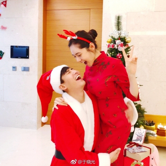 공개된 사진에는 우효광이 산타 복장을 한 채 아내 추자현과 크리스마스 파티를 즐기고 있는 모습이 담겼다.