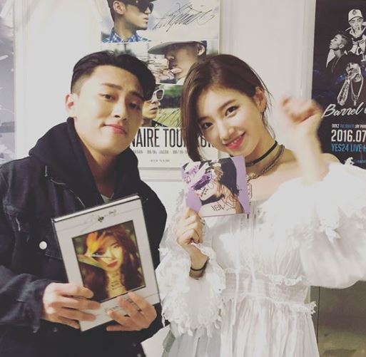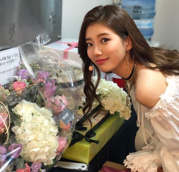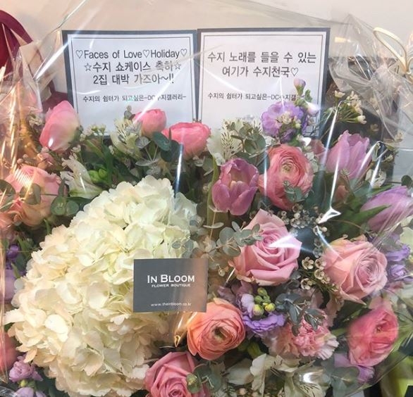 공개된 사진에는 팬들이 선물한 꽃다발 등 선물과 함께 인증샷을 찍은 수지의 모습이 담겼다. 또 이번 앨범 타이틀 곡인 ‘홀리데이(Holiday)’ 피처링을 맡은 래퍼 디피알 라이브(DPR LIVE)와 찍은 사진도 포함됐다.