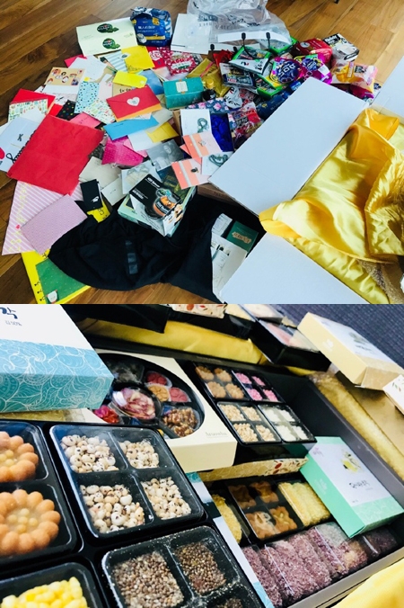 또 다른 사진에는 팬들에게 받은 편지, 음식, 상자 등 엄청난 양의 선물이 담겨 있어 눈길을 끌었다.