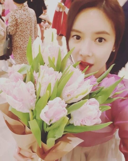 사진 속에는 한복을 곱게 차려입은 채 꽃을 들고 있는 황정음의 모습이 담겼다. 결혼 후에도 여전히 아름다운 외모를 뽐냈다.