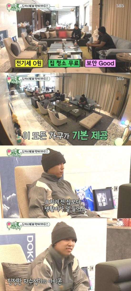 그의 새 집은 130평대 호텔. 도끼는 “호텔에 살면 난방비가 안 든다. 그래서 전 집에 비해 생활비가 덜 든다. 전기세도 0원이고, 청소도 무료다. 보안도 좋고 가구도 완비돼 있다”고 설명했다.