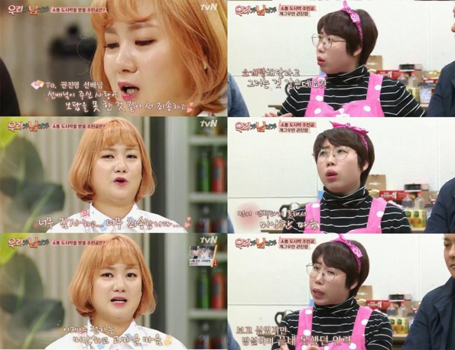 ‘우리가 남이가’ 박나래가 선배 코미디언 권진영에게 고마운 마음을 전했다.
