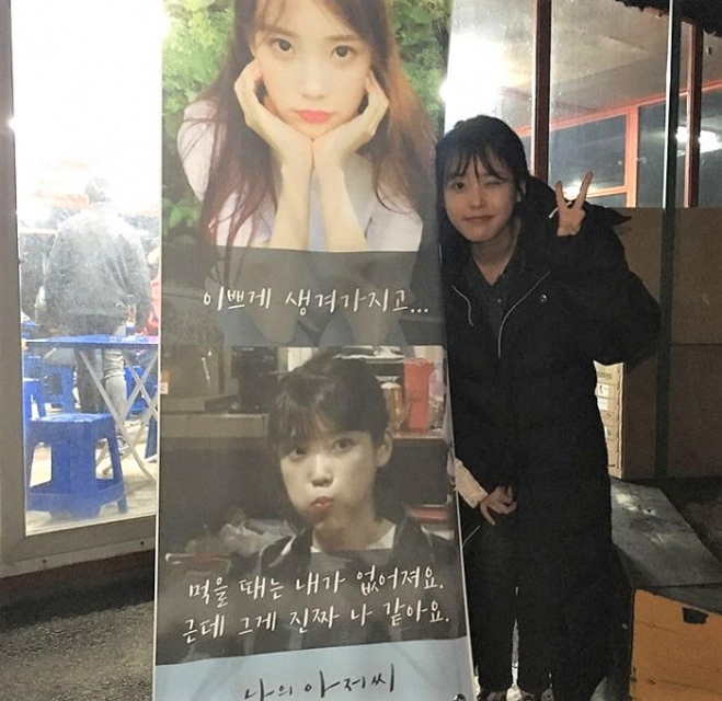 또 다른 사진에는 ‘밥 좀 드시죠? 지안이(극 중 이지은 이름) 언니 유인나입니다’, ‘나의 아저씨 팀! 착하다! 행복하자! 황송하다! 너무 재밌어서 황송해’라는 내용이 쓰인 현수막이 눈길을 끌었다.
