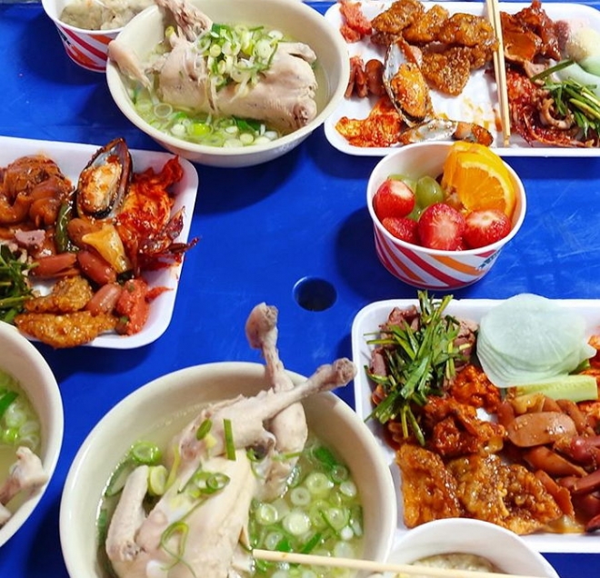 사진 속에는 환한 미소를 짓고 있는 이지은과 함께 유인나가 보낸 삼계탕 밥차 모습이 담겼다.