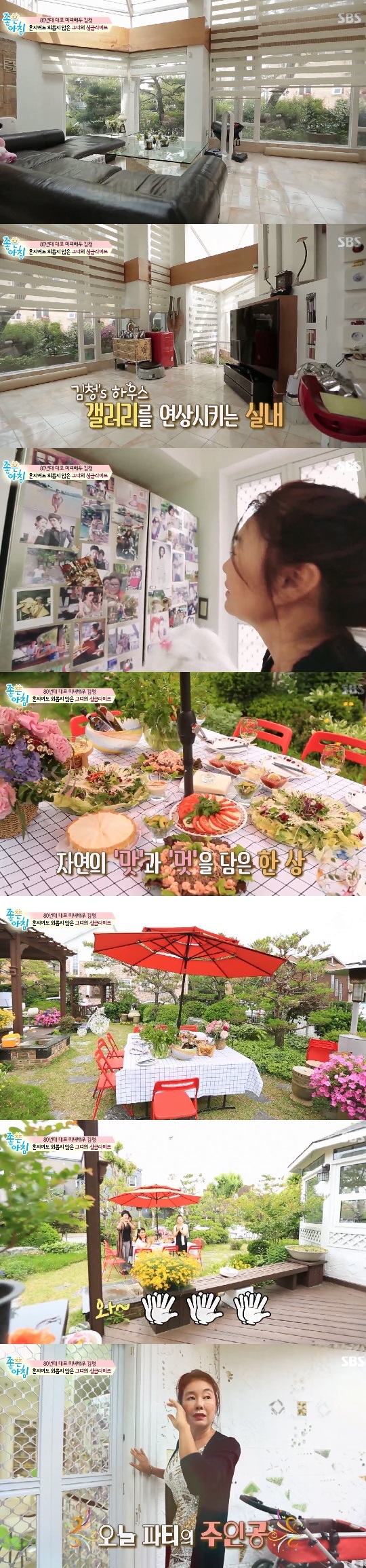 이날 공개된 김청 집은 넓은 정원을 자랑했다. 김청은 “우리 집 콘셉트가 파티”라며 “손님들이 많이 오는 편이다. 혼자 있는 걸 알고 많이들 놀아 주려고 한다”고 말했다.