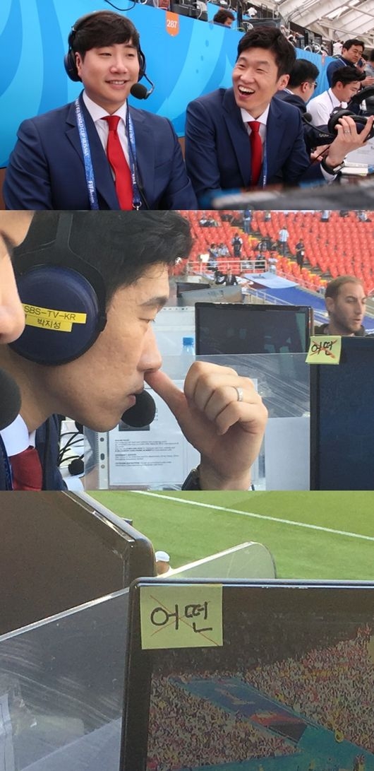 공개된 사진에는 지난 16일 러시아 월드컵 D조 1차전 아르헨티나vs아이슬란드 중계에 나선 박지성 모습이 담겨있다.