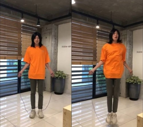 공개된 영상에서 이광수는 장발로 변신, 2분이 안 되는 시간 동안 줄넘기 200회 미션을 거뜬하게 완수했다.