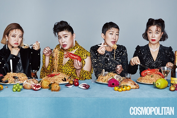 이영자와 절친한 동료인 김숙, 최화정, 홍진경이 함께 한 파티 화보 또한 ‘코스모폴리탄’ 12월호를 통해 공개됐다. 먹음직스럽고 푸짐한 음식과 함께 한껏 차려 입은 모습으로 유쾌하게 파티를 즐기는 모습이 단연 대한민국을 대표하는 ‘걸크러시 유발자’들이라 해도 무방할 정도로 ‘Fun Fearless Fabulous Party’라는 화보의 콘셉트를 잘 소화해냈다.