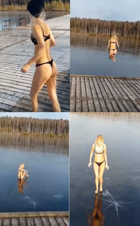 영상이 촬영된 곳은 러시아의 한 호숫가로, 해당 여성은 호수에 뛰어들기 위해 속옷과 모자를 제외한 모든 옷을 벗었다.