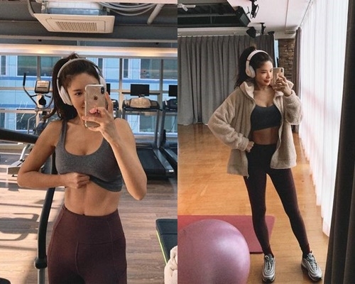 공개된 사진 속에서 김준희는 헬스장에서 복근이 드러난 톱을 입고 포즈를 취하고 있다.