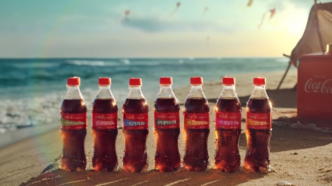 CF 마지막에 등장하는 코카콜라병의 ‘너라면 I’m Fine’, ‘넌 나의 IDOL’, ‘너답게 RUN’, ‘올해, 불타오르네’, ‘자 고민보다 Go’, ‘넌 정말 쩔어’ 등 라벨이 눈길을 끈다. 모두 방탄소년단의 히트곡 제목에서 착안한 문구로 방탄소년단 멤버 수와 같은 7가지다.