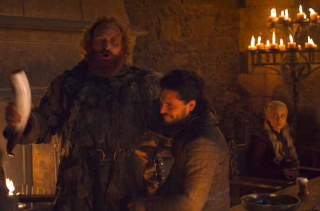 밤의 왕이 이끄는 백귀 떼거리를 물리치고 가상의 대륙 웨스테로스의 윈터펠에서 열린 축하연 도중 여자 주인공 대너리스 타르가르옌의 앞 탁자 위에 플라스틱 뚜껑까지 덮인 스타벅스 종이컵이 놓여 있었던 것이다. 한 트위터리언은 “왕좌의 게임에 등장한 새로운 카메오는 스타벅스 컵”이라고 비아냥댔고, 다른 이용자는 “제작자들이 2년에 걸쳐 에피소드 여섯 편을 촬영하고도 스타벅스 컵을 화면 안에 그대로 놔뒀다”고 비꼬았다.