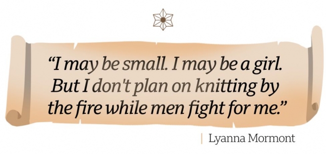 그래서 대표 대사는 리야나의 몫이다. “난 작을지 몰라요. 소녀에 불과할지 몰라요. 하지만 난 남자들이 날 위해 싸울 때 불가에서 뜨개질할 계획은 없어요.”