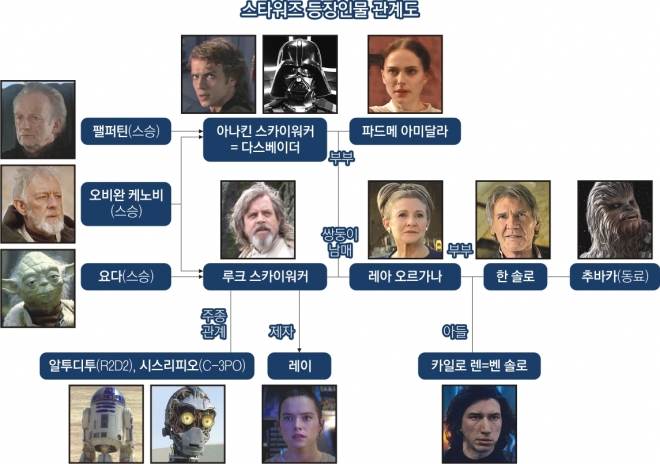 8일 개봉하는 ‘스타워즈 라이즈 오브 스카이워커’는 본편(에피소드)으로는 9번째, 번외편까지 합치면 11번째 작품이다. 루크 스카이워크(마크 해밀 분)가 사라진 뒤 위기가 찾아오고, 제국의 패배 이후 일어난 악의 집단 ‘퍼스트 오더’가 스카이워커를 찾아 나서면서 벌어지는 일을 다룬 에피소드 7, 8편과 한 덩어리 영화다.