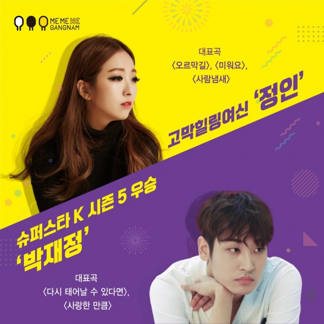 첫 공연은 가수 정인과 박재정이 세곡동 래미안포레에서, 22일 논현동 아크로힐스논현에서는 벤, 우디가 공연한다. 또 29일 도곡동 도곡렉슬아파트에서 강남심포니의 오케스트라 연주가 펼쳐진다.