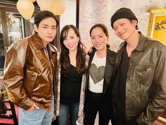 사진에는 방탄소년단 뷔와 배우 강동원, 한국계 디자이너 에바 초우, ‘파친코’ 총괄 제작자로 알려진 테레사 강이 화기애애한 분위기에서 편안한 미소로 서로의 어깨를 감싸며 함께한 모습이 담겼다. 각 분야의 최고의 스타들이 한자리에 모인 모습과 처음 알려진 뷔와 강동원의 친분에 많은 이들의 시선이 모였다.