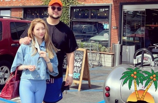 ‘미국 여행’ 연예인 부부…레깅스 차림 아내
