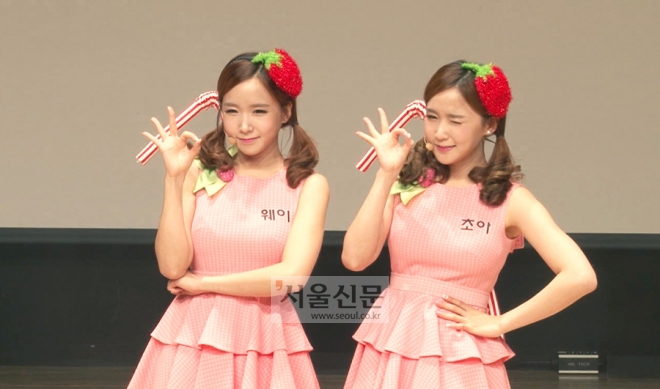 크레용팝 일란성 쌍둥이 멤버 웨이·초아로 구성된 유닛 딸기우유는 15일 오후 서울 강남구 청담동 일지아트홀에서 데뷔 쇼케이스를 가졌다.