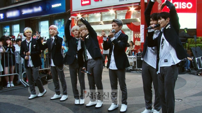 지난 31일 오후 서울 중구 명동길 소재 명동예술극장 앞에서는 엘시 은정과 그룹 스피드의 합동 게릴라 버스킹 공연이 열렸다.