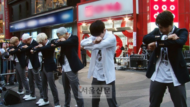 티아라 은정(이하 엘시 은정)과 보이 그룹 스피드의 합동 게릴라 버스킹 공연이 지난달 31일 오후 서울 중구 명동예술극장 앞에서 열렸다.