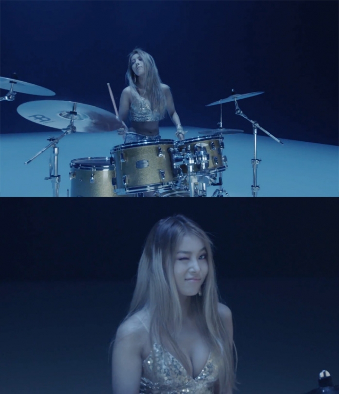 공개된 영상 속 탱크톱에 핫팬츠 차림으로 등장한 원더걸스 멤버 유빈은 여유 있는 표정으로 숨겨왔던 드럼 실력을 과시한다. 구릿빛 피부로 섹시함과 함께 카리스마를 내뿜는 유빈의 모습은 다이나믹한 드럼 비트와 맞물려 시선을 집중시킨다.