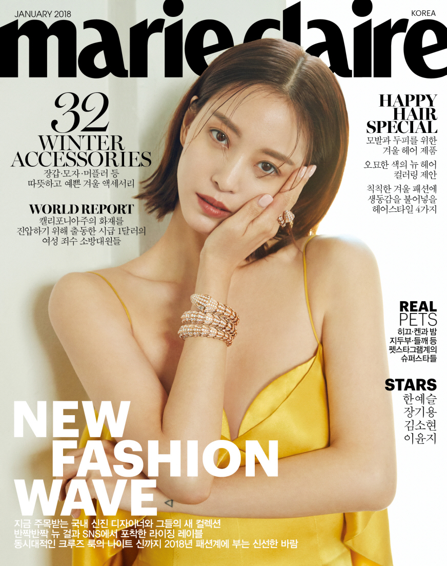 공개된 커버 속 그녀는 옐로우 슬립 드레스와 브랜드를 대표하는 뱀 모티브의 세르펜티 하이 주얼리 컬렉션의 로즈 골드 소재 다이아몬드 브레이슬릿과 링을 함께 매치하였다. 또한 그녀는 시크한 블랙 드레스에 풍성한 볼륨감의 에메랄드가 세팅된 진귀한 헤리티지 컬렉션 주얼리로 포인트를 주어 1960년대를 풍미한 여배우들의 모습을 완벽하게 재연했다.