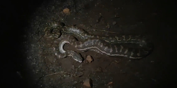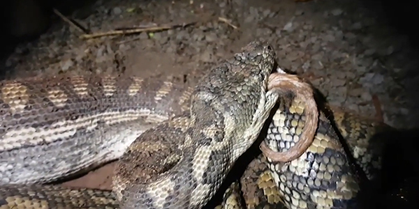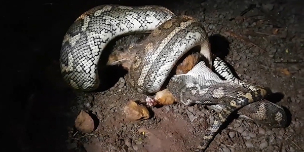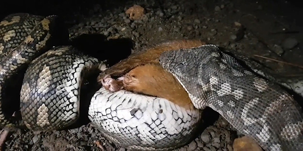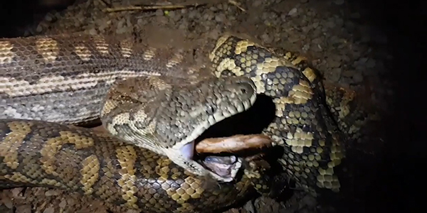 호주에서 비단뱀이 포섬(주머니쥐)을 통째로 삼키는 순간이 포착됐다.