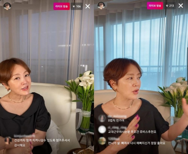 이승연의 라이브 방송에 참여한 팬들은 “오늘 찐 다이어트 이야기 술술 넘 좋아요”, “저 아까 8법칙 속기했잖아요”, “건강한 다이어트해 보도록 할게요”라며 응원의 댓글을 전했다.